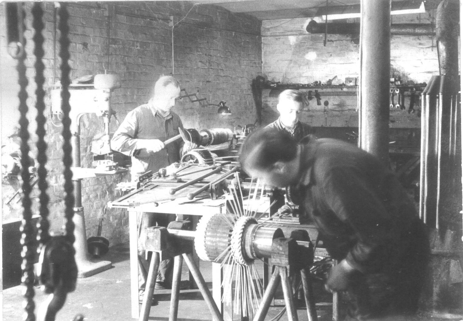 Der Beginn 1949: Herr Meurers beim Wickeln eines Gleichstromankers